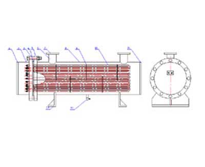 需要加熱的介質(zhì)由進(jìn)口進(jìn)入,通過折流板使介質(zhì)充分得到加熱,然后經(jīng)出口流出。為了使介質(zhì)的溫度達(dá)到要求的溫度,可以在筒體內(nèi)部或出口處安裝一個(gè)溫度傳感器采集介質(zhì)的溫度,配合數(shù)字溫度調(diào)節(jié)儀等控制電路來控制電加熱管。超過設(shè)定溫度停止工作,低于設(shè)定溫度啟動。